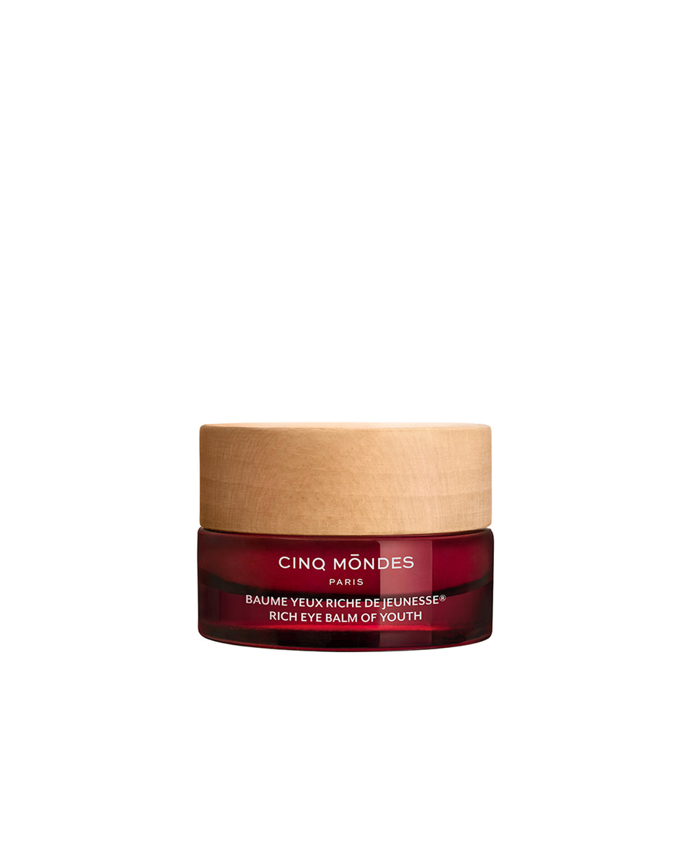 Baume Yeux Riche de Jeunesse di Cinq Mondes è una crema anti-rughe specifica per il contorno occhi, ispirata ai rituali di bellezza di Guilin, in Cina. Formulata per rassodare le palpebre superiori cadenti, questa crema rende la zona degli occhi più liscia e tonica. Leviga le zampe di gallina e attenua le occhiaie, donando un aspetto radioso e visibilmente più giovane all'intera area degli occhi.